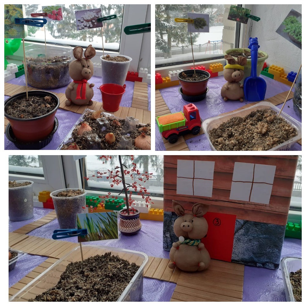 Ось саме персонажі цієї казки і завітали у гості до наших малюків. Та не просто погостювали: Ніф-Ніф, Наф-Наф і Нуф-Нуф залишилися жити у маленьких Капітошок на підвіконні. Вони разом збудували один будиночок на трьох із каменю, дерева та соломи і тепер ніколи не сваряться. Поросятка разом з нашими дітками посадили город на своєму подвір’ї та тепер дбайливого його доглядають.