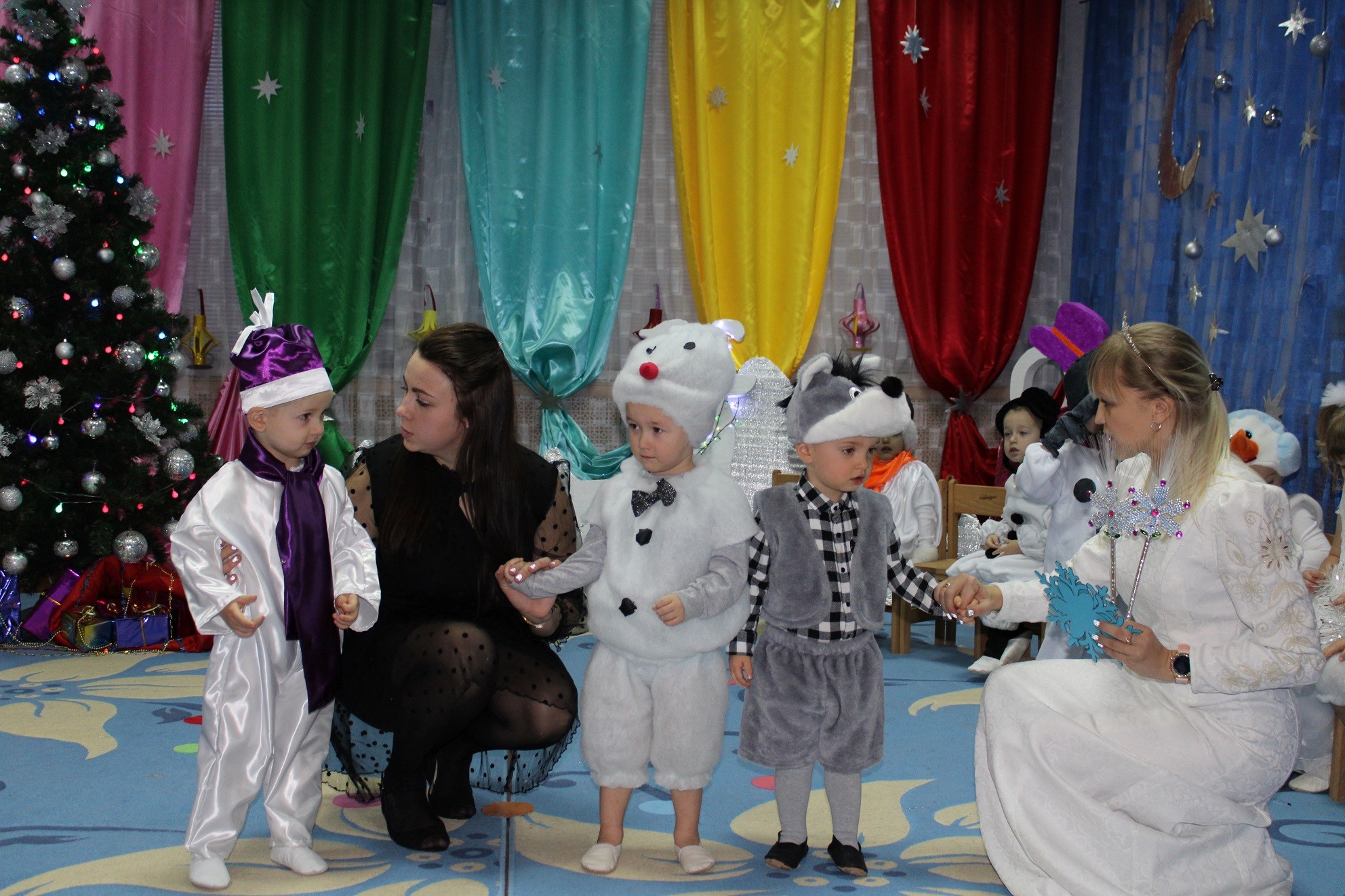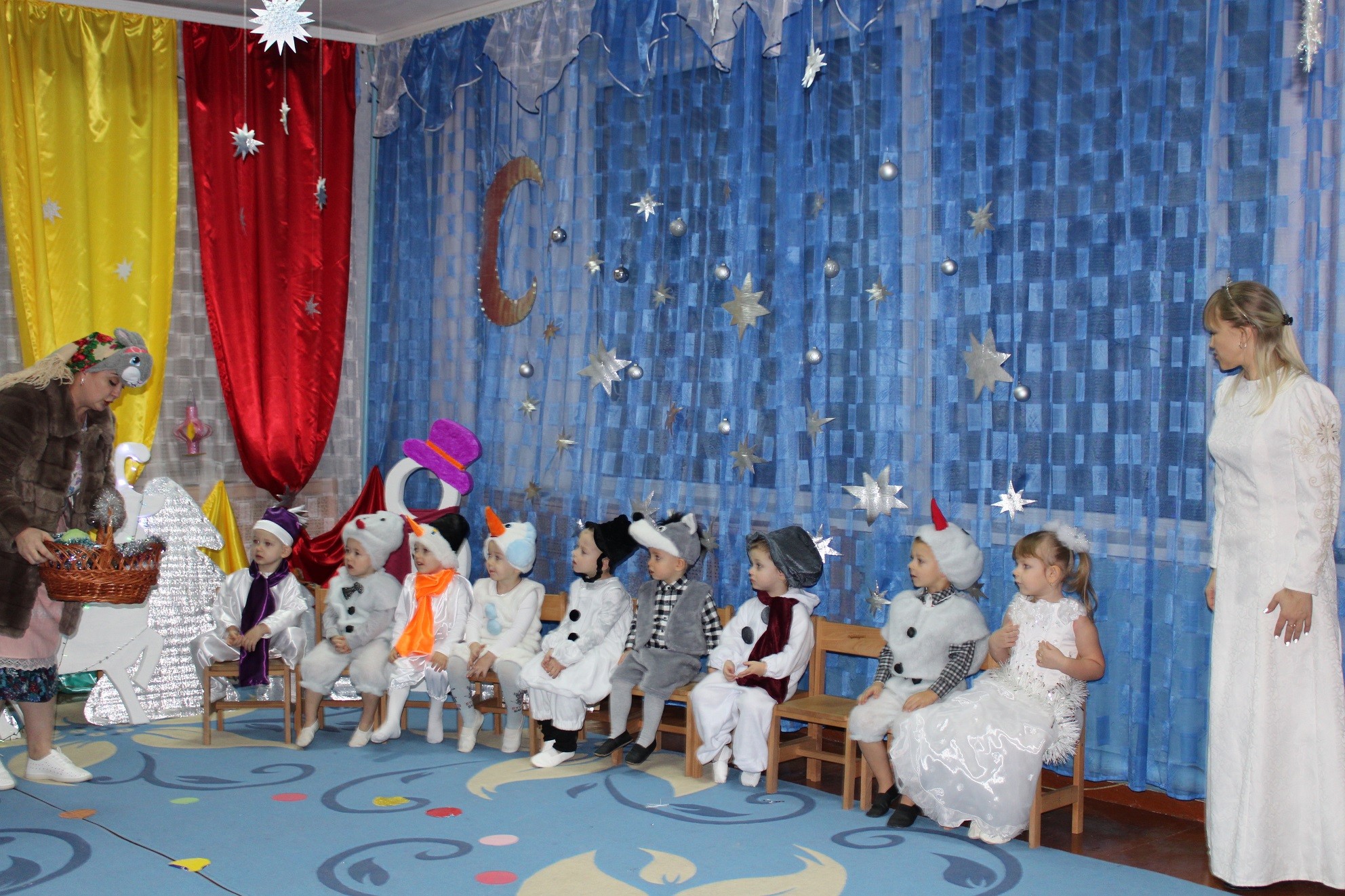 Сьогодні до малюків групи “капітошка” завітали гості: Зима, Зайчик, Сніговик та Дід Мороз з подаруночками. Дітки дуже вдячні ТОВ “Молоко Вітчизни” тп Миколаївській сільській раді за смачні подаруночки. Також хочемо подякувати Куценко Ірині Павлівні за іграшки, подаровані нашим малюкам.