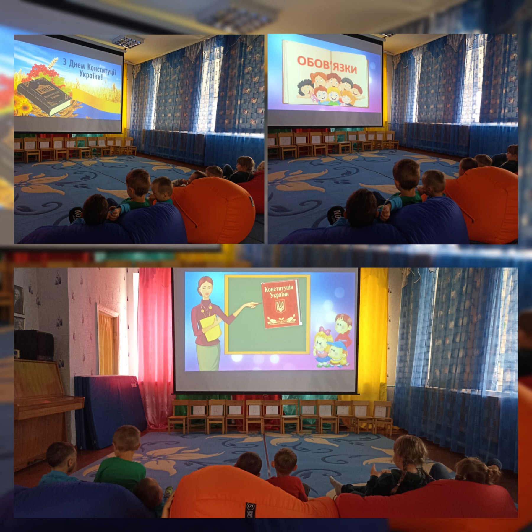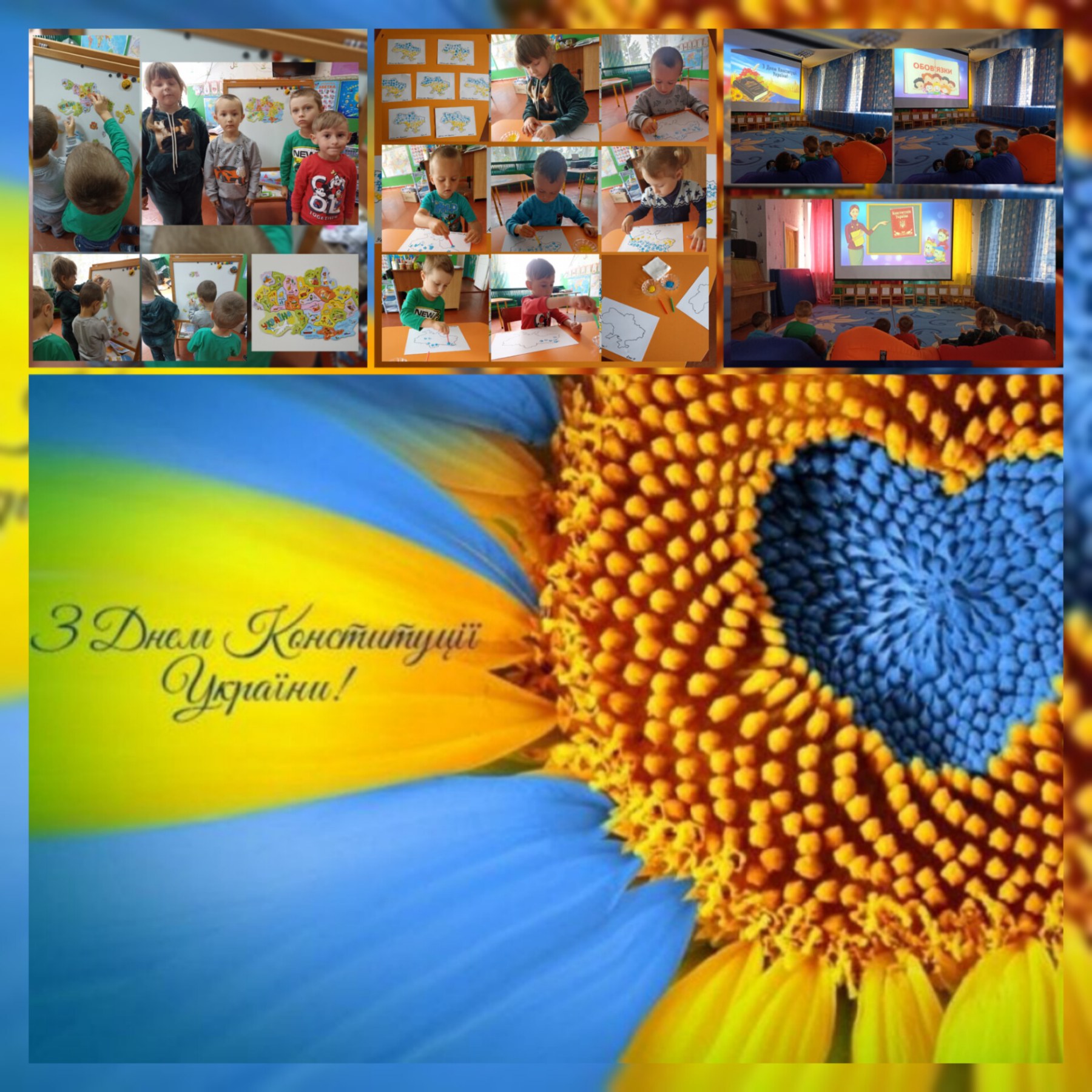 Впродовж дня з дітьми проведено бесіду на тему «Країна в якій я живу», колективний перегляд розвивального відео «Що таке Конституція?», художньо-естетична діяльність «Квітни, моя Україно!», грали в дидактичні ігри «Українці які?», «Збери карту України».